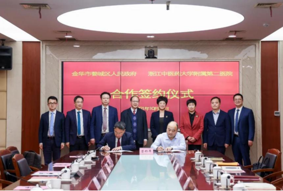 2021年10月29日,浙江中醫藥大學附屬第二醫院與浙江省金華市婺城區人民政府合作共建高水平中西醫結合醫療中心簽約儀式在婺城區會議中心舉行。浙江中醫藥大學黨委書記黃文秀、黨委副書記張光霽,婺城區委書記蔡艷、區長黃國鈞,浙江中醫藥大學附屬第二醫院黨委書記陳衛建、院長張威、副院長董雷、院長助理丁光超等,以及相關部門負責人共同參加簽約儀式。簽約儀式由黃國鈞主持。