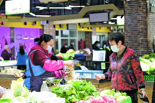 市民在南廠路農貿市場內選購商品。 通訊員 趙松 攝