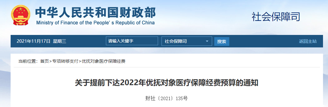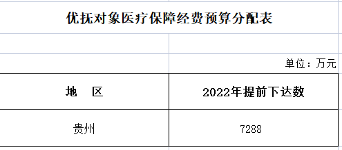 11月17日,財政部網站發布了“關于提前下達2022年優撫對象醫療保障經費預算的通知”。根據優撫對象醫療保障經費預算分配表顯示,貴州省獲得7288萬元提前下達經費。