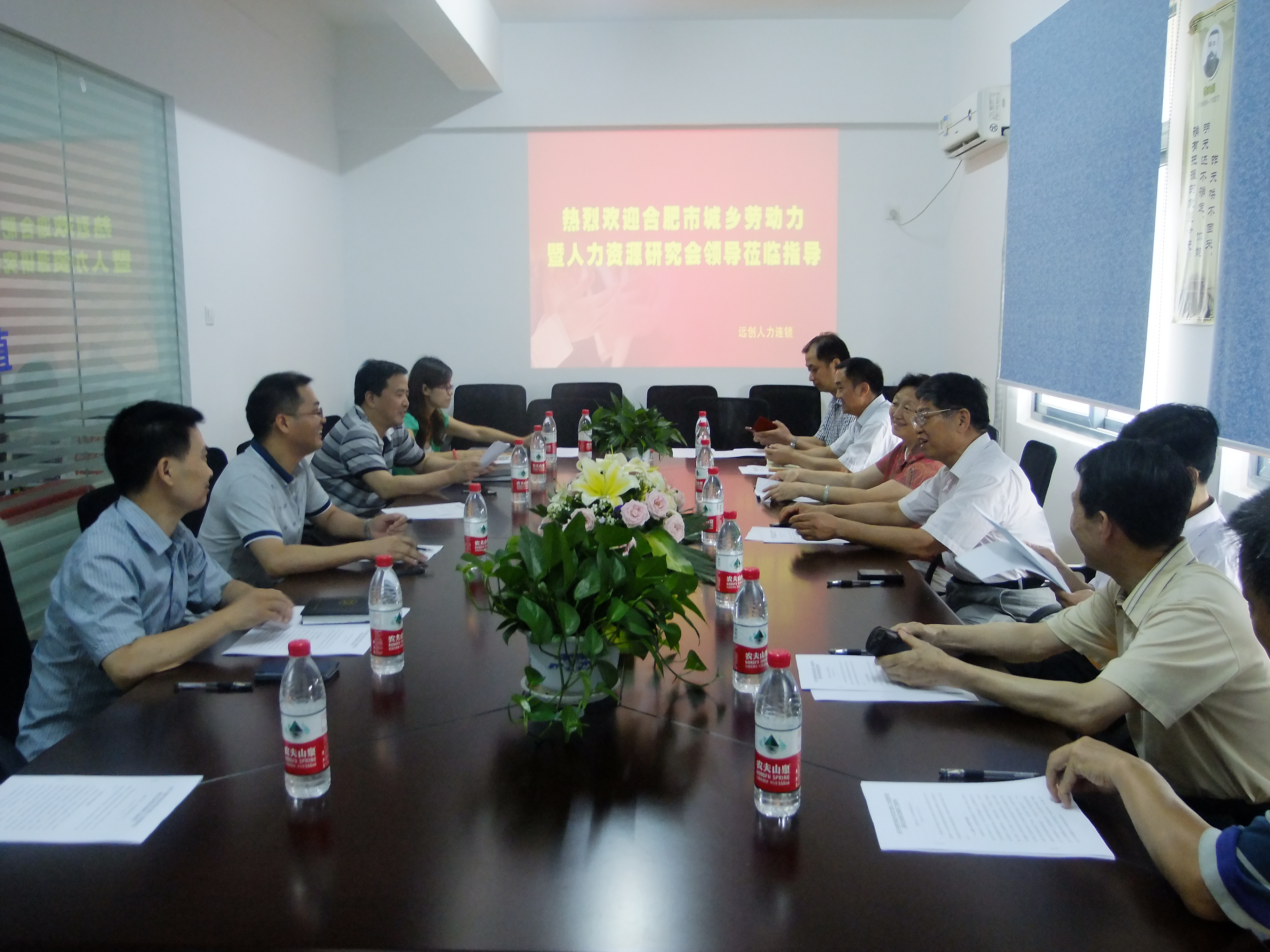 7月16日上午,合肥市城鄉勞動力暨人力資源開發研究會會長,原合肥市人大常委會常務副主任甄長琢、執行會長梁虹等領導一行來我司調研指導人力資源服務工作,瑤海區人力資源和社會保障局局長李德兵等相關領導一行陪同調研。