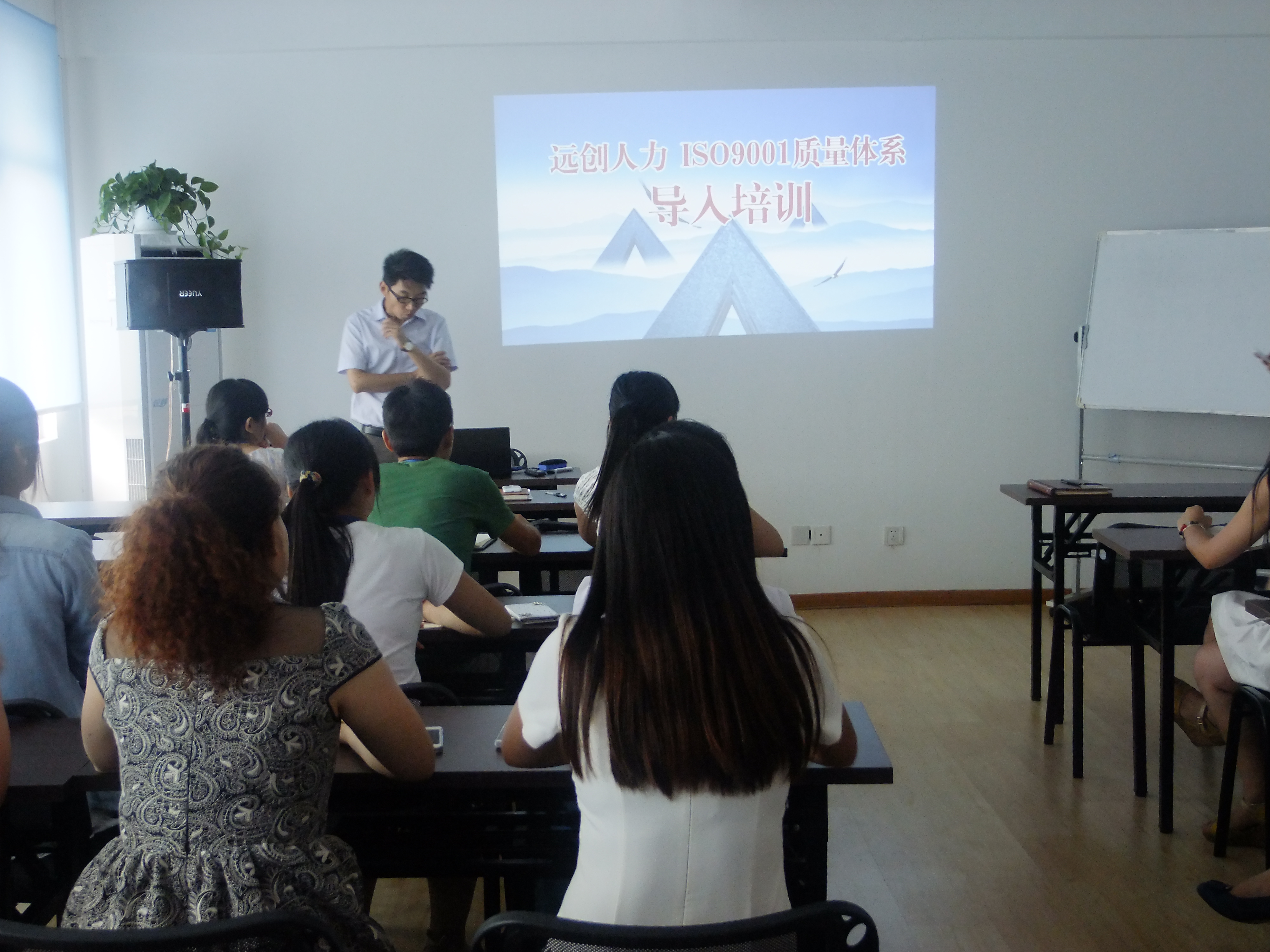 8月4日下午,安徽遠創人力資源管理有限公司在公司培訓中心組織開展了ISO9001質量管理體系的導入培訓,也是遠創人力繼“3S+2E尊享品質服務”體系導入之后的又一舉措,旨在不斷提高客戶服務滿意度。