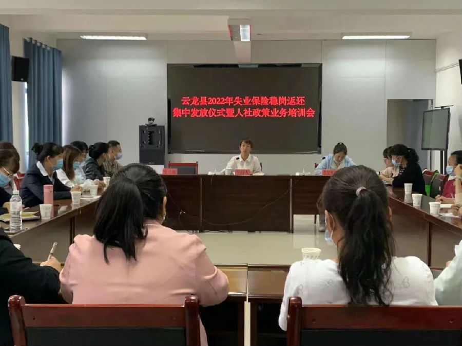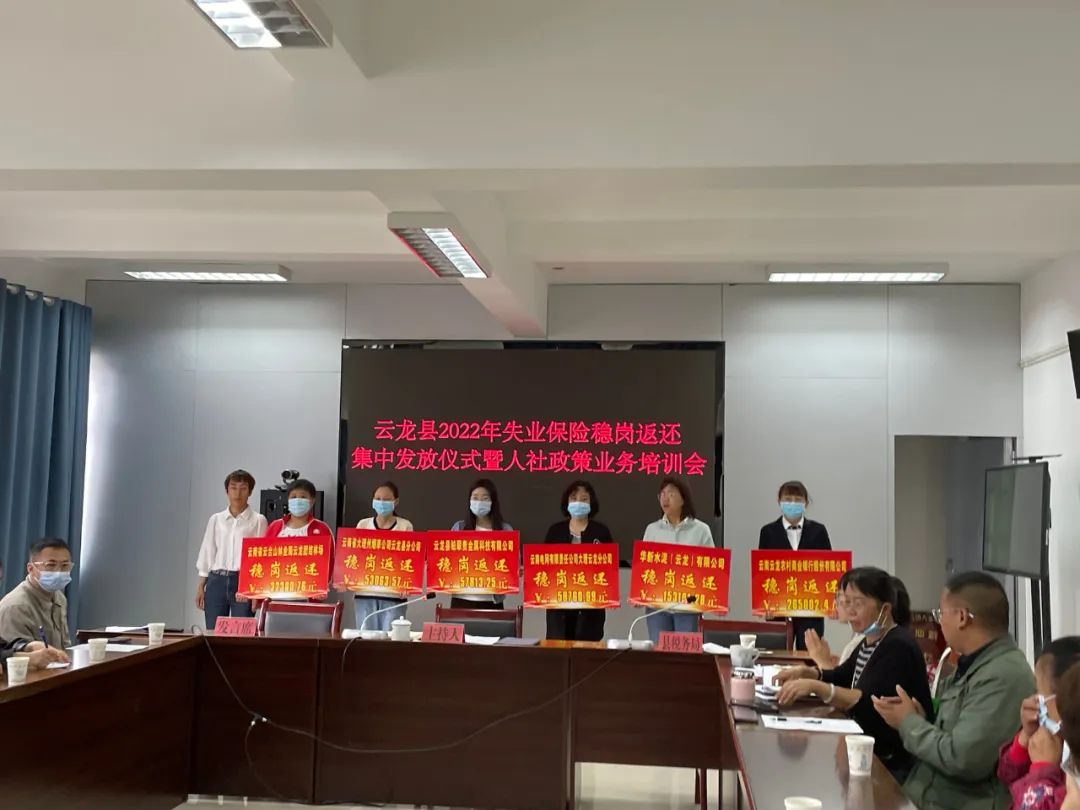 為認真貫徹落實黨中央、國務院和省州縣各級黨委政府關于助企紓困的決策部署,最大限度發揮失業保險穩崗返還政策效應,在全社會營造良好氛圍。5月17日,云龍縣人社局舉行2022年失業保險穩崗返還集中發放儀式暨人社政策業務培訓,全縣共有57家企業符合穩崗返還政策發放要求,補貼金額88.17萬元,惠及職工1749人。縣人社局主要負責人、分管領導和25家縣內企業代表及縣人社局干部職工參加發放儀式。