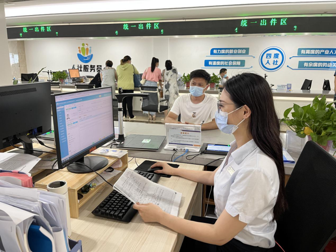 近日,襄陽市高新區孫莊社區居委會的周女士,來到襄陽市市民中心人社服務大廳,要為新入職的幾名員工辦理錄用手續。工作人員王丹主動詢問周女士的辦事需求,當得知周女士在辦理完人社業務后,還要辦理職工醫保和公積金手續后,王丹告知周女士,她要辦的這些業務現在都可以聯辦了。看著一臉疑惑的周女士,王丹熱情地為她“一對一”地指導服務。周女士在窗口將員工的養老、工傷、失業保險、勞動用工備案、醫療、生育保險和公積金等所有手續一次辦完后,不禁感嘆:“要不是你及時提醒我,我今天又要多跑幾次腿。真沒想到過去要跑幾個部門的事,現在一個窗口就辦好了,真是方便!”