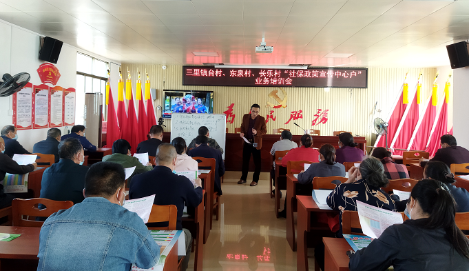 武宣縣人力資源和社會保障局向?“人社政策宣傳中心戶”開展養老保險政策培訓