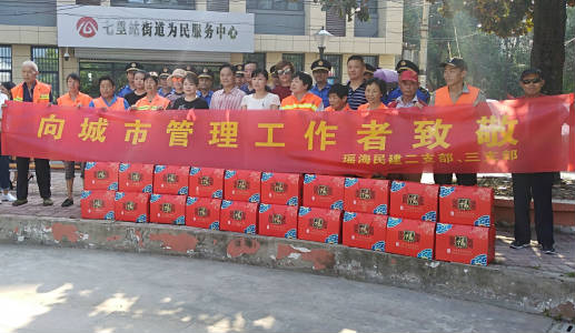 活動現場,民建支部成員紛紛給邀請到現場的數名環衛工人和城管工作人員送去了禮盒,表達了對工作在一線勞動者們的敬意和感激。大家在一起親切交流、合影留戀,現場氣氛和高溫天氣一樣如火如荼,但是每個人都感受到一份愛心,一絲清涼!