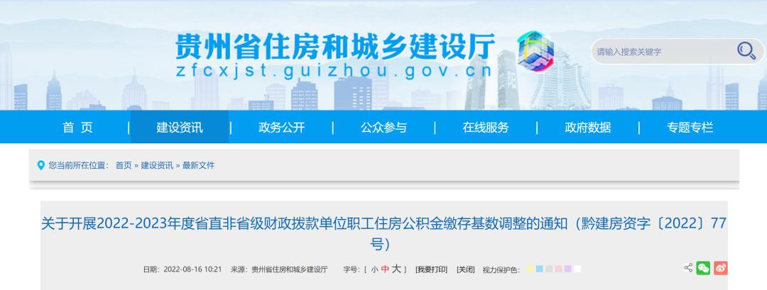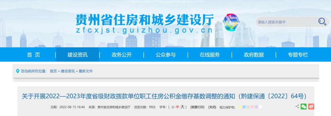 根據《住房公積金管理條例》,參照貴陽市住房公積金管理中心《關于2022—2023年度貴陽市貴安新區住房公積金繳存比例及繳存基數執行標準的通知》(筑公積金通字〔2022〕76號)有關規定,經研究,現將2022-2023年度省級財政撥款單位職工住房公積金基數調整工作通知如下: