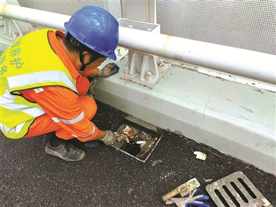 外灘大橋泄水孔清理。(市政部門 供圖)