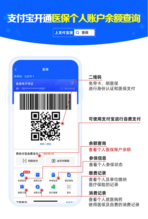 9月1日起,根據北京市醫保局發布的《關于調整本市城鎮職工基本醫療保險有關政策》的通知,職工醫保個人賬戶的錢將實現專款專用,也就是用于支付本人在定點醫療機構或藥店發生的醫藥費用,不再可以隨意支取。記者了解到,為方便廣大市民更便捷地查詢醫保個人賬戶余額,支付寶近日開通了醫保個人賬戶余額查詢服務,進入支付寶醫保電子憑證頁面即可一鍵查看余額,同時也可查看個人醫保繳納情況以及個人就醫購藥使用醫保及自費的消費記錄。