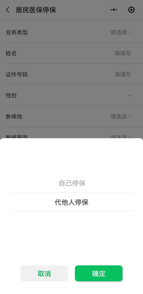 業務類型中,可選擇“自己停保”或“代他人停保”。