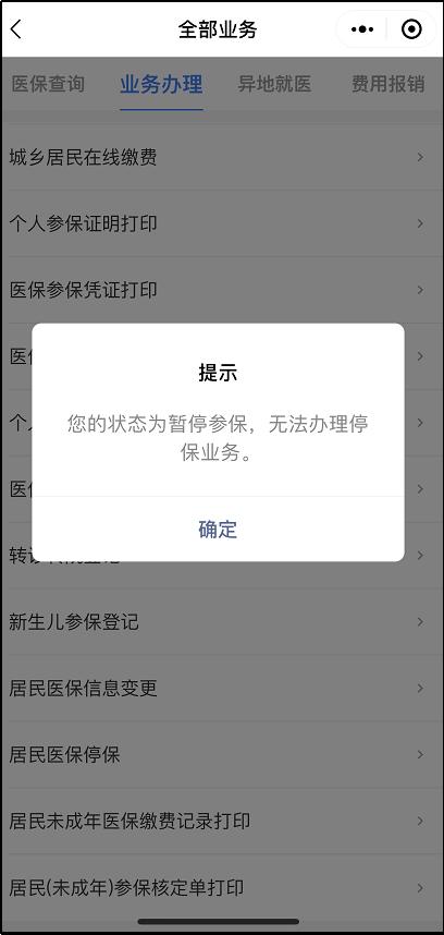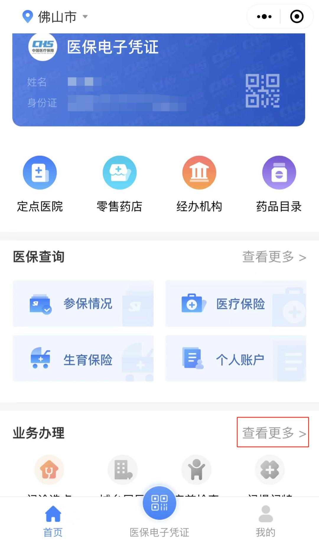 “業務辦理”中點擊“查看更多”,后點擊“居民醫保停保”進入操作頁面。