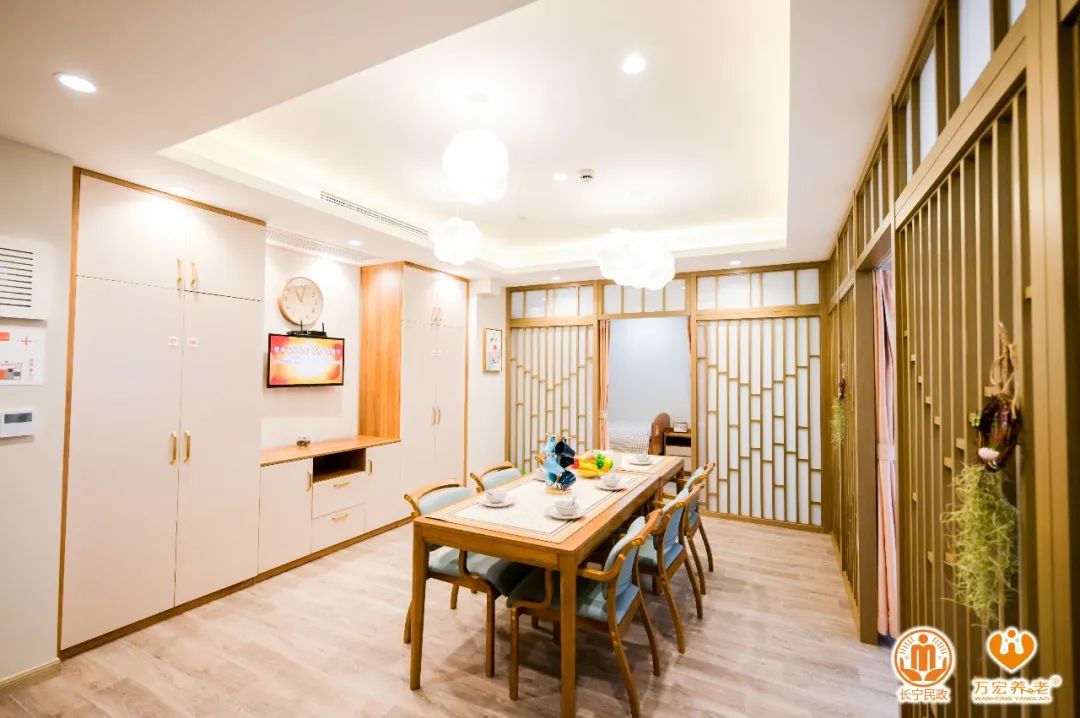 值得一提的是,萬宏悅馨長者家園的每一個樓層都配備了照護站、備餐間、公共浴室和洗手間,每一個房間內還有單獨的洗手間和客廳,在為老人提供私密空間的同時,也營造了一個家庭式的居住氛圍。
