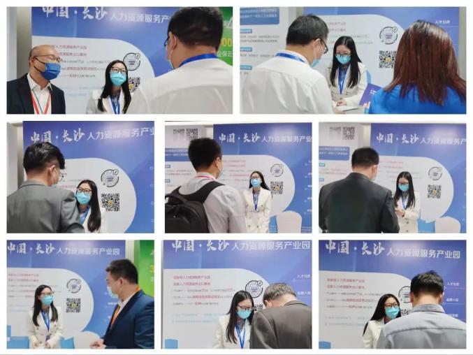 在中國長沙人力資源服務產業園展區,產業園經開園區相關負責人攜招商團隊與來自全國各地的人力資源行業從業者分享、交流經驗,同時尋找商務合作契機,與瑞人云、榮正咨詢等多家人力資源服務機構洽談,宣講推介湖南相關政策優勢、產業園運營情況等,建立了友好的初步聯系。