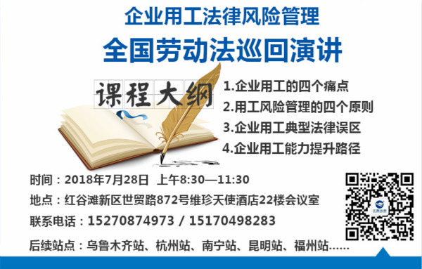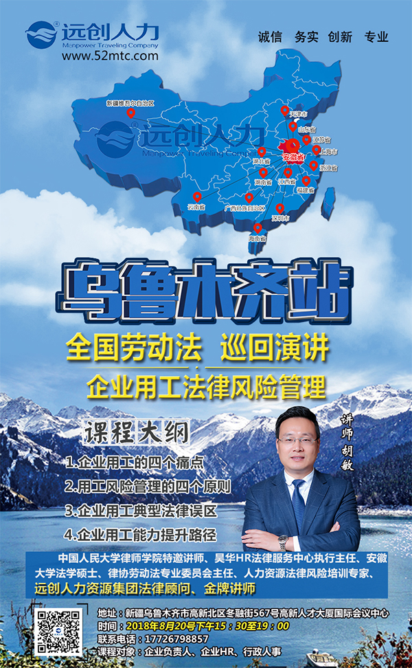 2018年7月28日上午遠創人力“勞動法管理課程全國巡講-南昌站”活動位于江西省南昌市世貿路維珍天使酒店22樓會議室舉行!本次活動由遠創人力集團和江西遠創人力資源管理有限公司主辦!由中國人民大學律師學院特邀講師,安徽大學法學碩士胡敏胡律師主講!