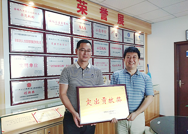 2018年8月1日下午,合肥市公共就業人才服務管理中心李方成副主任、合作交流部林云濤部長蒞臨遠創人力資源集團指導工作,并代表合肥人力資源服務產業園授予我集團“突出貢獻獎”!同時勉勵遠創人再接再厲,創造輝煌!