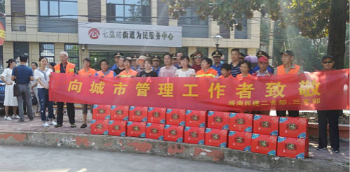 活動現場,民建支部成員紛紛給邀請到現場的數名環衛工人和城管工作人員送去了禮盒,表達了對工作在一線勞動者們的敬意和感激。大家在一起親切交流、合影留戀,現場氣氛和高溫天氣一樣如火如荼,但是每個人都感受到一份愛心,一絲清涼!