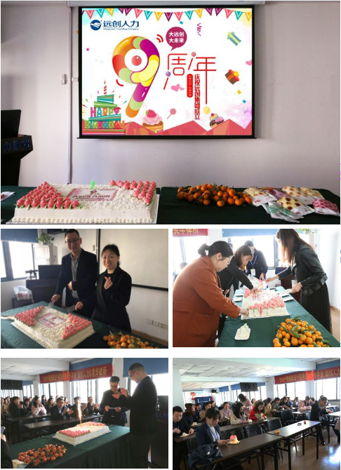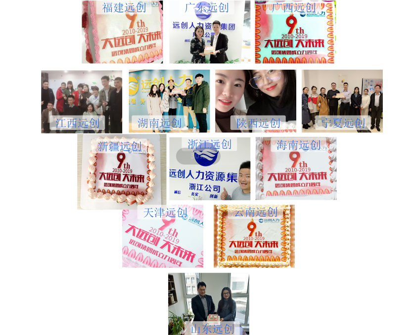 今天,遠創人力資源集團全國18個省級分支機構的小伙伴們在上午10點59分共同為集團的九周年舉行了生日活動。