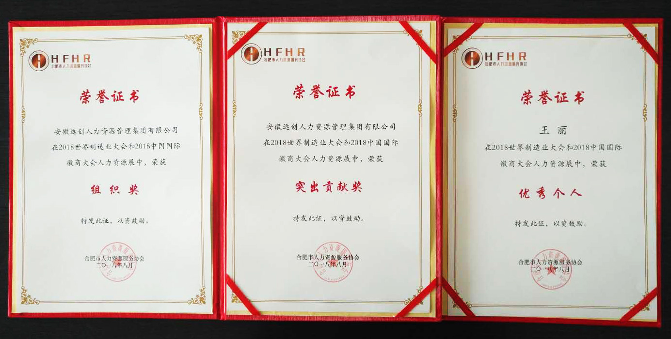 表彰會上,遠創人力資源集團作為安徽人力資源展區代表之一,以旗下品牌 “辦社保網”創新、獨特產品理念和優質服務榮獲“組織獎”、“突出貢獻獎”兩大獎項,集團員工王麗榮獲“優秀個人獎”,并代表遠創人力資源集團上臺領獎。