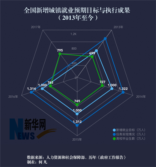 人力資源和社會保障部數據顯示,2016年,全國城鎮新增就業1314萬人,連續四年保持在1300萬人以上,連續四年超額完成目標任務。